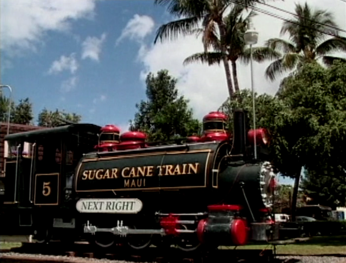 Oahu Sugar No. 5 is on display outside the main station at the Lahaina, Kaanapali and Pacific Railroad.