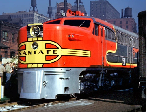 The ALCO PA was designed and tested near the end of WW2 in an effort to be ready for the post war market. This would also be the first use of the 244 engine in a mainline locomotive. The test engines (an A-B-A set) were sent to the Santa Fe in Warbonnet scheme.