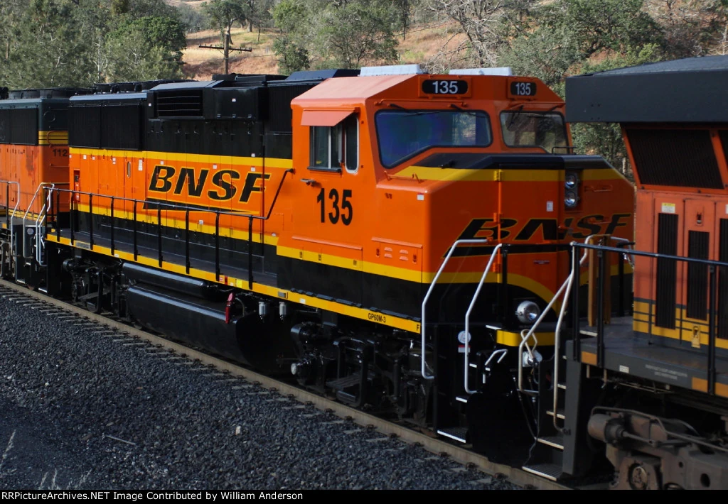 135 is a GP60M diesel engine being built by EMD. 135 was originally built for the Santa Fe in July, 1990, but it didn't work for the Santa Fe for long because five years later Santa Fe merged with Burlington Northern to be BNSF. 135 is still in service today. There are plans to try and set 135 aside for preservation in Topeka, KS where it would be restored to Santa Fe warbonnet.