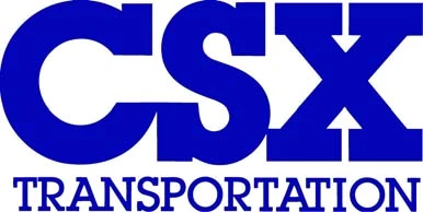 The official CSX logo, which often varies in size, color, and has different slogans.