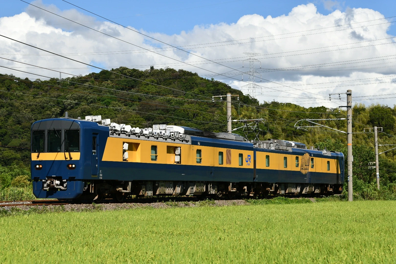 The train incorporates artificial intelligence, the first route inspection train in Japan to do so, as a means to cover labor shortages. It is equipped with a lozenge pantograph for overhead line inspection, track equipment diagnosis systems, electrical imaging equipment, electric equipment measuring devices and imaging devices incorporating artificial intelligence. These systems are planned to be put into practical use by 2025.