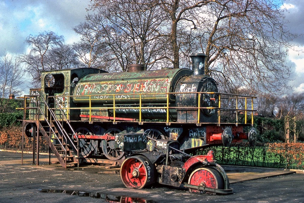 It was withdrawn from service in 1965 and presented to the City of Cardiff where it was put on display at Splott Park near the steelworks. Here it was provided with steps and railings for onlookers, but eventually it garnered the attention of vandals who had covered it in graffiti. Over time its whistle and dome cover also became lost. By 1979 it was in a deteriorating condition and was put up for sale by the City Council.