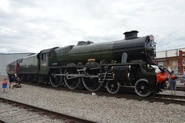 The engines owners secured a lease on a section of track to Dinting railway station near Glossop in Derbyshire where it established the Dinting Railway Museum around a former Great Central steam shed. This was the engine's first operational base in its preservation years and following 1968 banned steam locomotives on the rail network, the ban was eventually lifted in 1971. Bahamas was one of a small selection of steam locomotives selected to run on the British Rail network to haul enthusiasts railtours. The engine was eventually withdrawn from traffic in 1973 following the expiry of the engines boiler certificate and its first preservation overhaul began with the intention of returning the engine to the mainline. The engine retained it's British Railways lined green livery with the late crest on its tender (this being authentic for the engine with its double chimney). Once the overhaul was completed in 1988, it returned to the mainline hauling railtours alongside visits to heritage railways.
