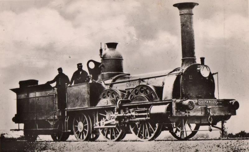 During their working live on the Ouest Railway, the 201s ensured many types of trains on the Paris to Cherbourg line. From where they were made, between: Mantes and Caen; and Caen and Cherbourg. They also leaved the former PCC territory and pulled trains from Serquigny to Rouen. With time goes on and traffic increasing, the ouest Railway built in its workshops at Sotteville-lès-Rouen (former Buddicom Workshops), 10 new locomotives between 1863 and 1867, built with the regulator placed in a box just behind the funnel. In 1865, nos. 215 "Coutanges" and 216 "Avranches"were modified by receiving the same feature on the regulator, and took new numbers, 251 and 252 respectively.