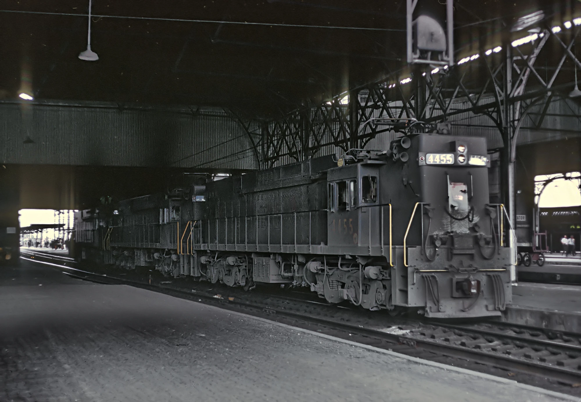Delivered between 1960 and 1963, the E44s were often double- or even triple-headed in heavy freight service, and even teamed up occasionally with GG1s. In the winter of 1966, E44s could also be seen assisting on the head of GG1-powered passenger trains, when fine snow caused the GG1s some electrical problems. The E44 fleet went on to serve a succession of owners, as former Pennsy rails came under the control of the Penn Central and later Conrail. After Conrail electric service ended in 1981, a number of units worked for Amtrak until they were retired; one Amtrak unit #4465 resides today at the Railroad Museum of Pennsylvania, restored to its original Pennsy colors.