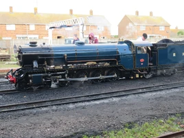 Then in 1961, Samson received as super-heated boiler. On the 6th of August in 1973, Samson struck a stolen car at St. Mary's crossing with the driver of Samson, Peter Hobson being killed and Samson badly damaged and sent to Leeds, Yorkshire for repairs, it was the first incident in which a driver of the engine was killed at a level crossing. In 1984, Samson was used at a Garden Festival in Liverpool and in 1989, Samson was repainted into Prussian Blue inspired by the Great Eastern Railway blue. Her 2018 major overhaul saw her emerge in Caledonian Blue and loose her smoke deflectors and her classic red piston rods. Samson is currently operational and is using an American Crosby Chime whistle while wearing a Prussian blue livery resembling that worn on the Somerset and Dorset Joint Railway.[1][2][3][4][5]