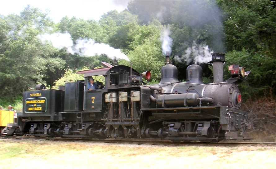 - Locomotive #2: Built in 1899 for the Hetch Hetchy Valley and Yosemite Railroad for use at the sawmill of West Side Flume and Lumber Company near Tuolumne City. First named Thomas S. Bullock after the first general manager of the West Side Flume and Lumber Company, the locomotive was purchased for Roaring Camp in 1962 for $7,000. It is the last steam engine used in the commercial lumber business in Tuolumne, California,[2][11] and the oldest Heisler still in operation.